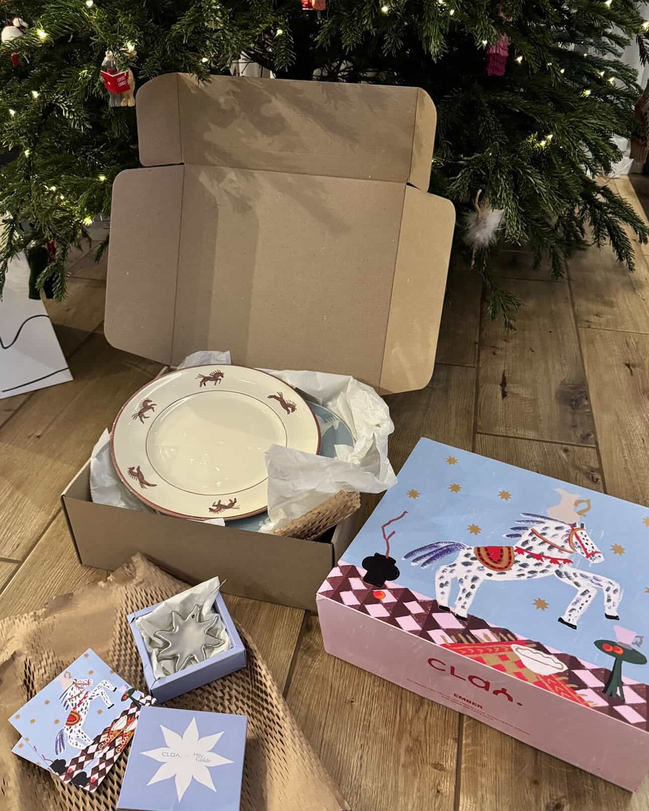 Кожен виріб ми дбайливо загортаємо у тіш’ю та вкладаємо в коробку, яку доповнює святковий рукав із малюнком колекції Ember.