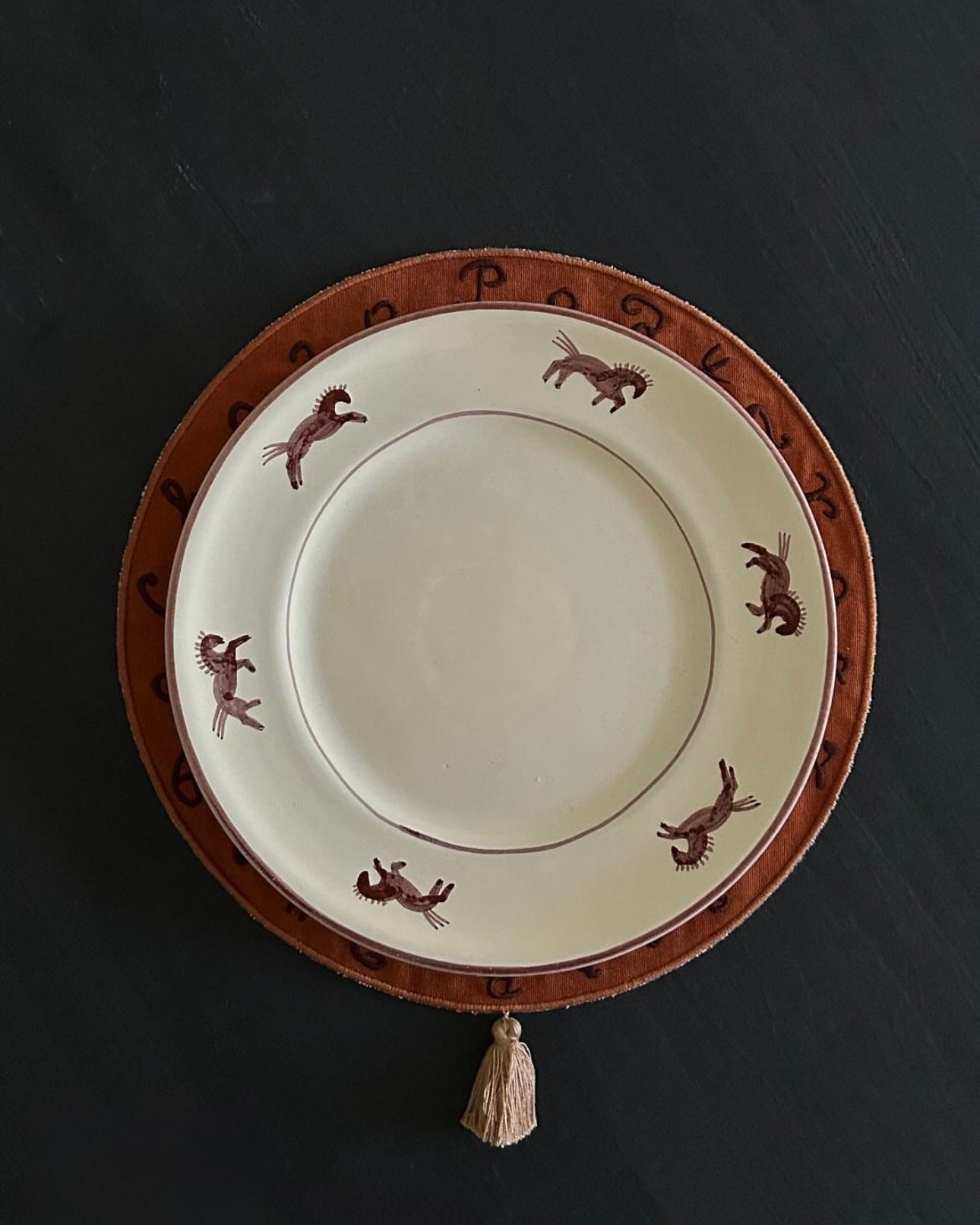 Тарілка виконана у молочному або блакитному кольорах, оздоблена ручним розписом у наївному стилі. Головним героєм став кінь Вуглик.